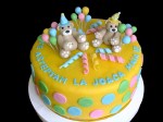 Prietena mea Anișoara și-a dorit două tortulețe cu multă ciocolată pentru botezul micuței Maia. Unul dintre ele este acest tort vesel, cu ursuleți și baloane, din partea frățiorilor care o așteaptă pe Maia la joacă 🙂