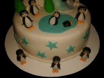 Din nou un tort pentru Alina, de data aceasta cu pinguini care se dau pe pȃrtie și se bălăcesc :).